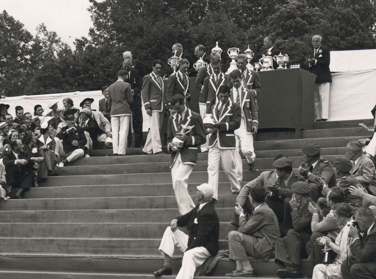 The Friday saw us pitted against Trinity Hall, a crew containing three of that year’s winning Blue Boat and a trial cap. We won by 1¼ lengths, much to the surprise of the cognoscenti. The crowd seemed a bit quiet as we came happily home.